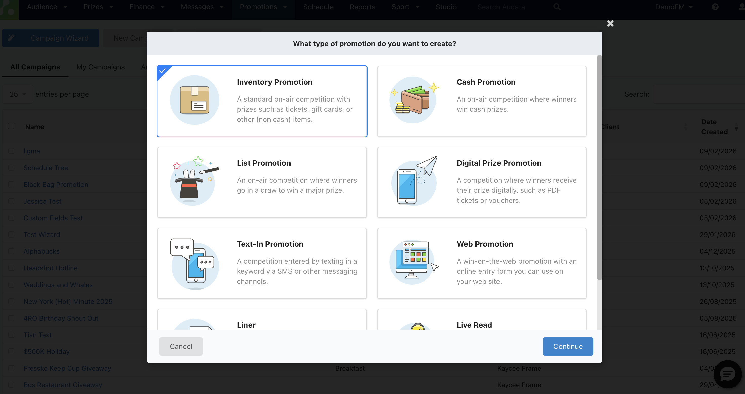 Our Campaign Wizard takes a multi-step process of setting up a new campaign and makes it simpler than ever. Instead of creating a campaign, creating inventory items, liners, or other components, and then scheduling, the Campaign Wizard asks you a few questions and does the whole process for you.